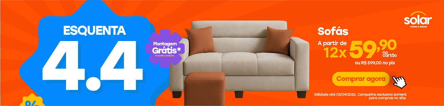 Sofá Liege Solar 3 Lugares com 2 almofadas + 1 Puff