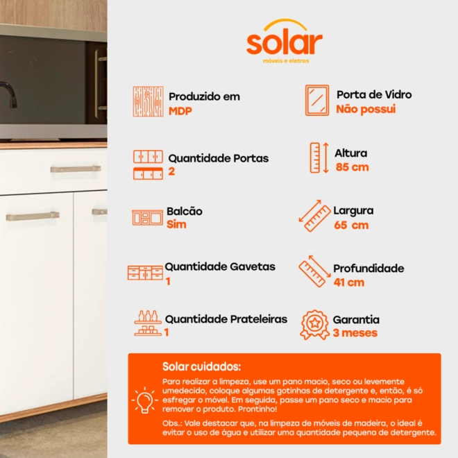 Na Solar, dá pra levar o Balcão Nicioli Isis 2 Portas e 1 Gaveta!