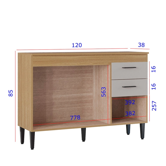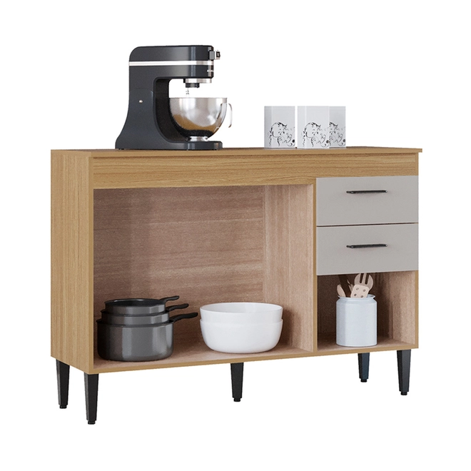 - 2 gavetas com corrediças metálicas, ideais para guardar talheres, utensílios e pequenos objetos;