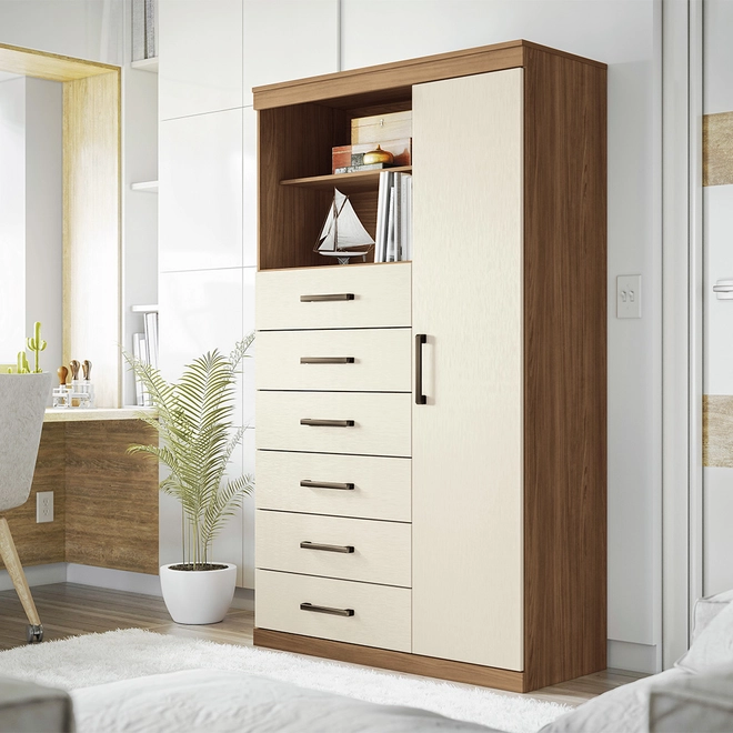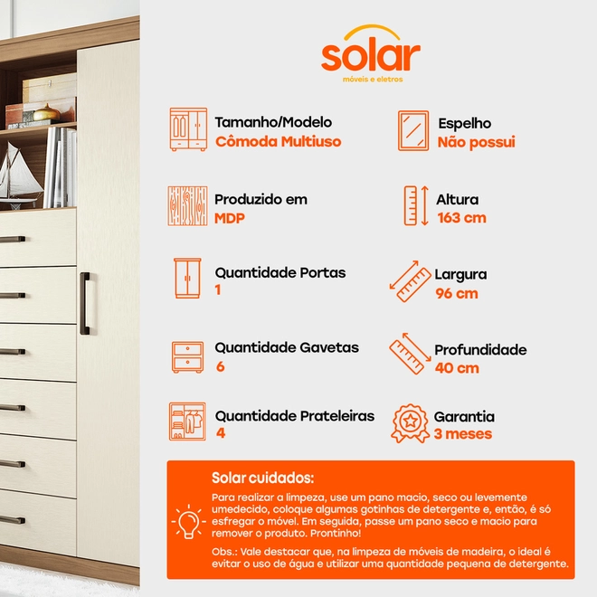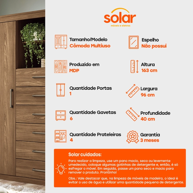 Na Solar, dá pra levar a Cômoda Multiuso Santos Andirá Marabá 1 Porta e 6 Gavetas!
