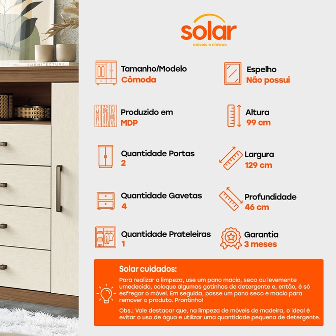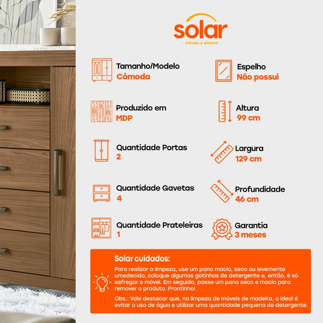 Na Solar, dá pra levar a Cômoda Santos Andirá Havana Master 2 Portas e 4 Gavetas!