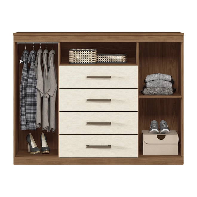 02 prateleiras internas, perfeitas para organizar acessórios, caixas ou roupas dobradas