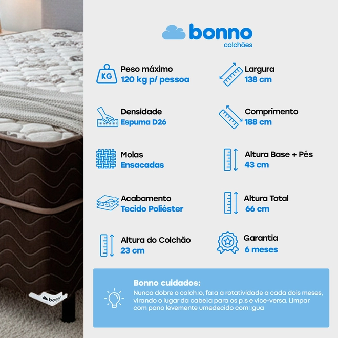 Cama Box Casal Bonno Oceano Molas Ensacadas 138x188x66