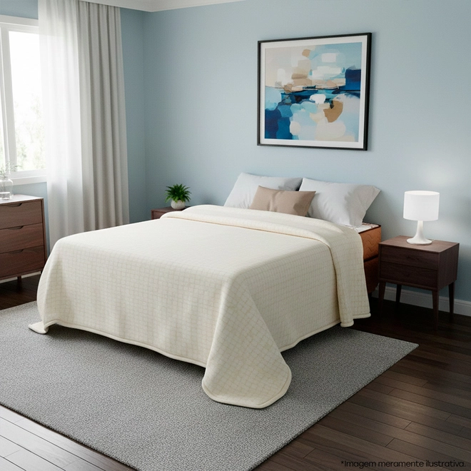 - Lateral em tecido poliéster bege, harmonizando com o design do colchão.