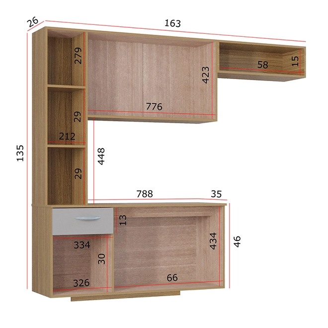 - 1 gaveta com corrediça metálica, perfeita para armazenar talheres e pequenos utensílios;