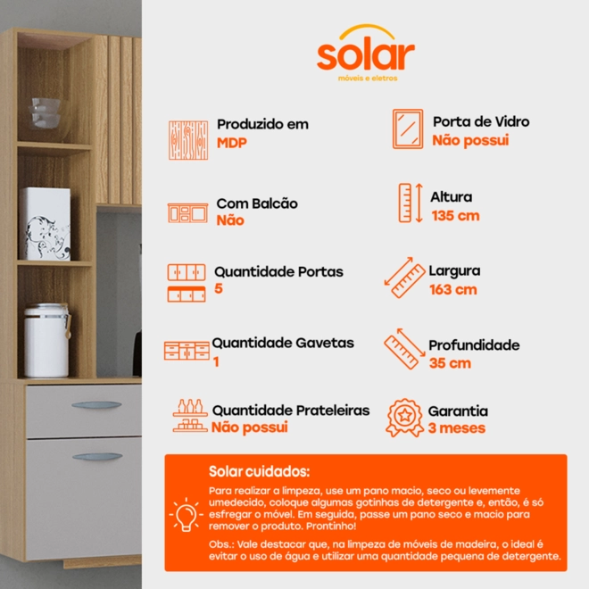 - 5 portas com dobradiças metálicas, garantindo mais resistência e durabilidade;