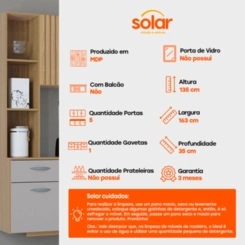 Na Solar, dá pra levar o Armário de Cozinha Suspenso Poquema Isis 5 Portas 1 Gaveta!