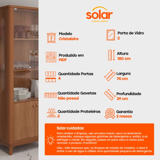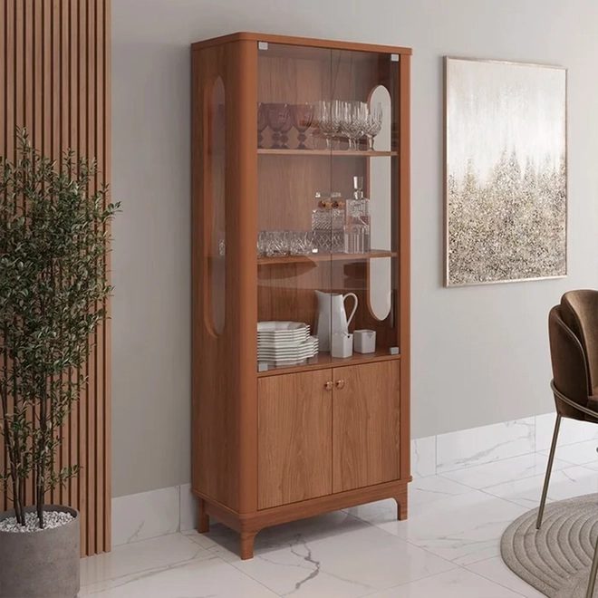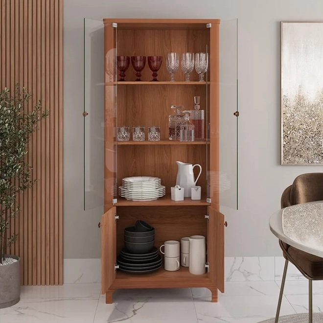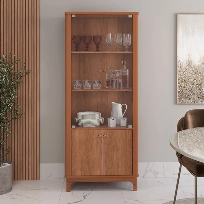 Perfeita para expor louças, taças e objetos decorativos, ela combina design clássico com acabamento moderno, valorizando qualquer ambiente.