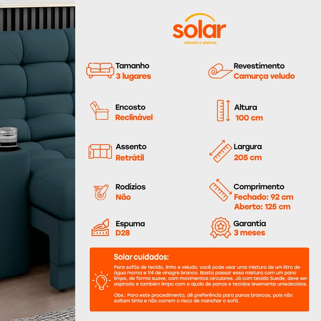 Na Solar, dá pra levar o Sofá Best House Confort 3 Lugares Retrátil e Reclinável!