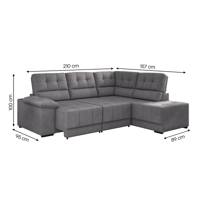 Comprimento: 157 cm (canto) | 210 cm (2 lugares)