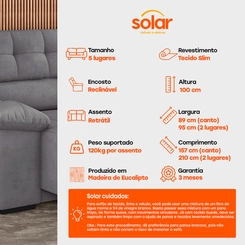 Na Solar, dá pra levar o Sofá de Canto Modular Best House Firenze 5 Lugares Retrátil e Reclinável!
