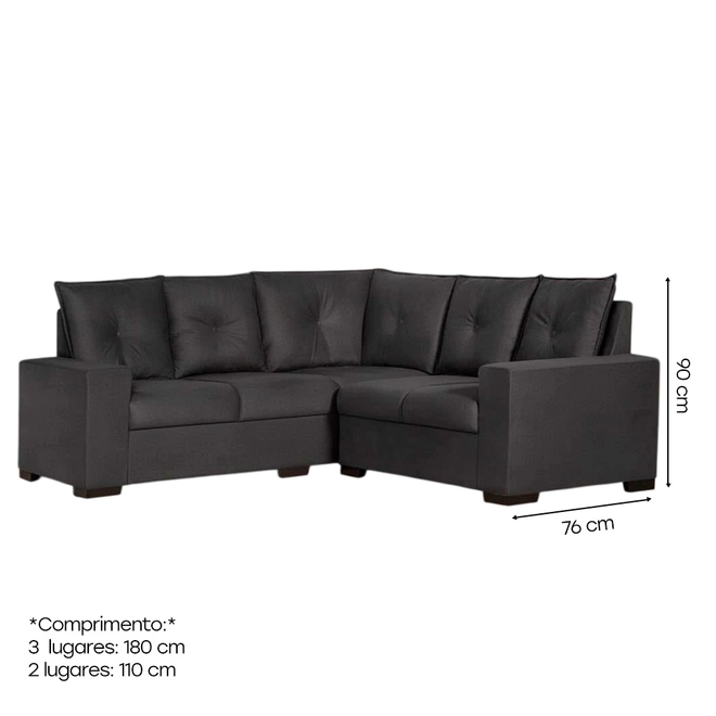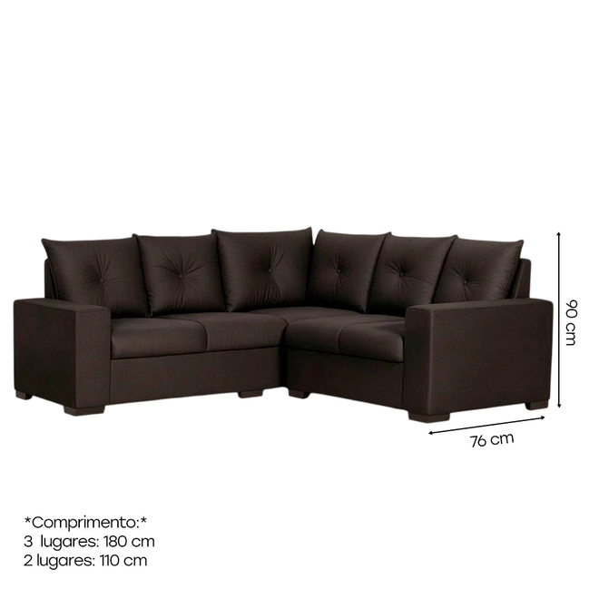 - Encostos: Fixos, acompanhados de 6 almofadas soltas