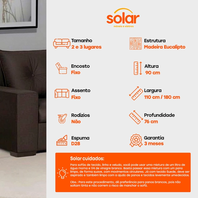 Na Solar, dá pra levar o Sofá Cemara Clarinha Full 2 e 3 Lugares!