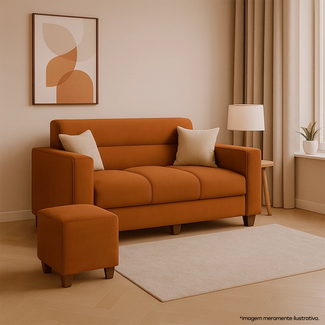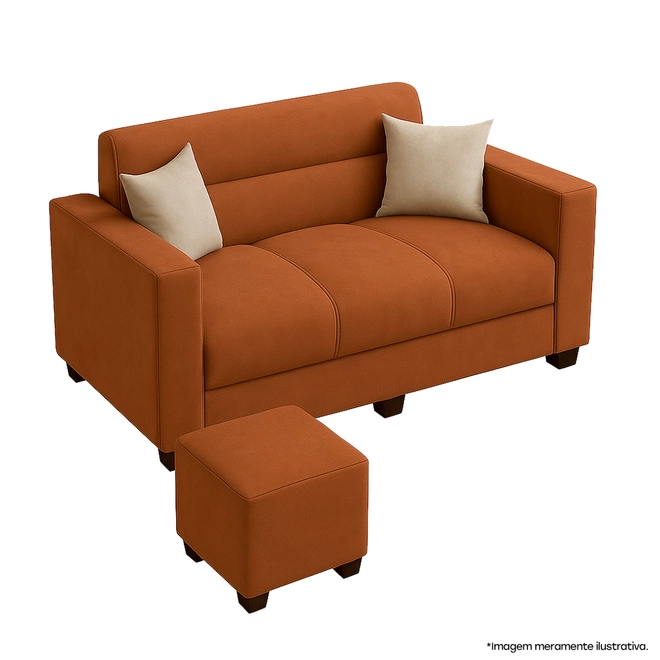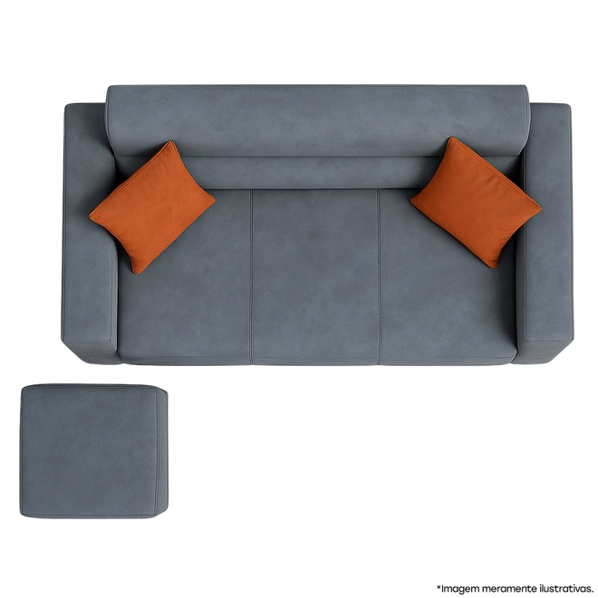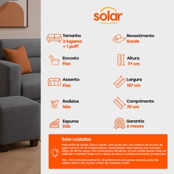 Sofá Liege Solar 3 Lugares com 2 almofadas + 1 Puff