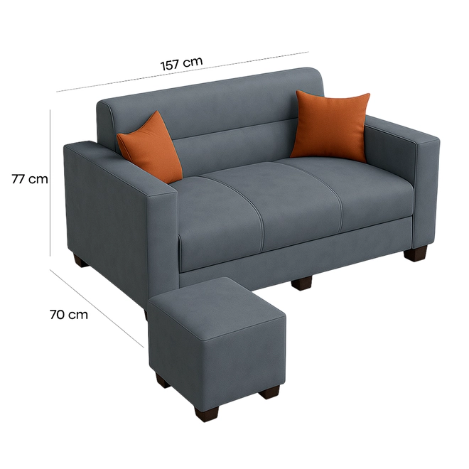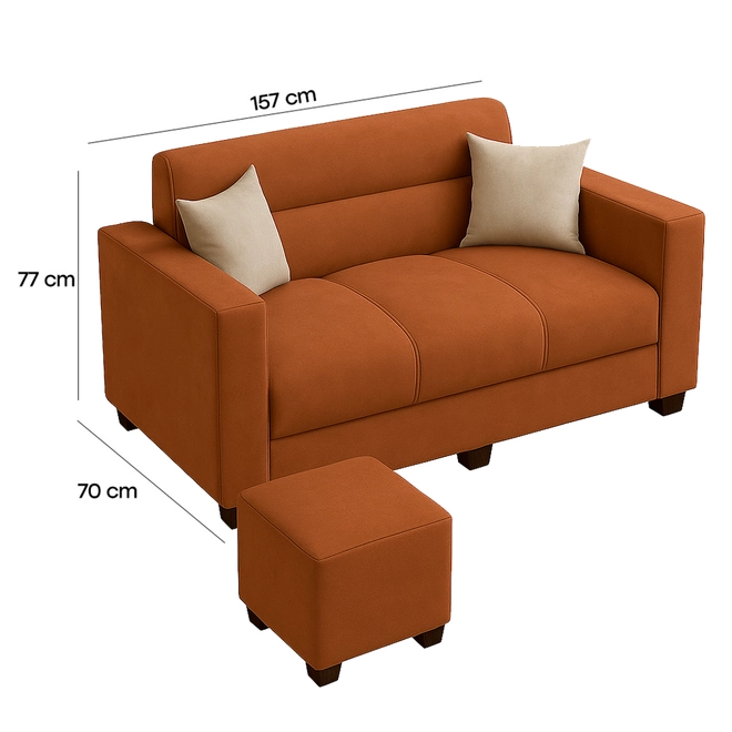 Com 157 cm de comprimento, 77 cm de altura e 70 cm de largura, o sofá tem o tamanho perfeito para oferecer conforto sem ocupar demais o espaço.