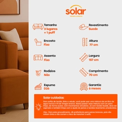 Com linhas retas e acabamento moderno, o Sofá Solar combina com diferentes estilos de decoração, tornando seu ambiente mais agradável e sofisticado.