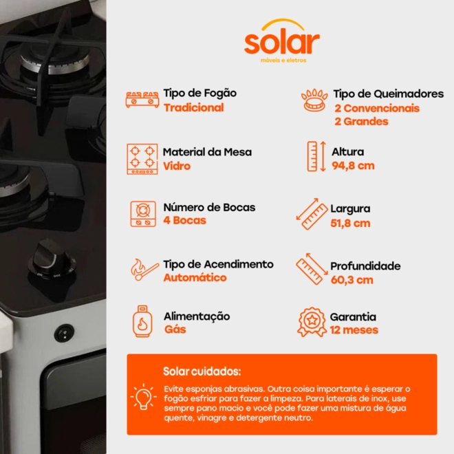 Na Solar, dá pra levar um fogão moderno e funcional para sua cozinha!