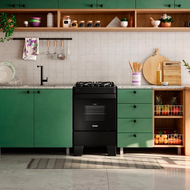 O Fogão Consul CFO4VCE combina design elegante com funções inteligentes para simplificar o preparo das suas receitas.