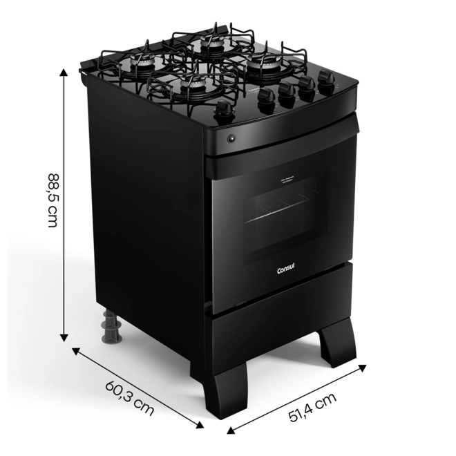 - Pés Elevados: Facilidade total na limpeza! Com os pés altos, você passa a vassoura ou pano por baixo sem precisar arrastar o fogão.