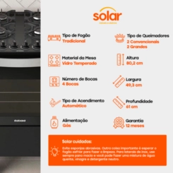 Na Solar, dá pra levar o Fogão Itatiaia 4 Bocas Itaglass Plus Acendimento Automático