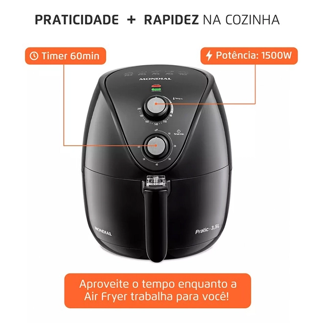 Fritadeira Elétrica Sem Óleo Air Fryer Mondial 3,5L AF-35-BF