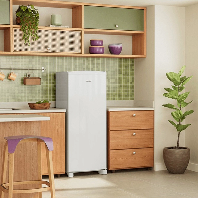 Com capacidade de 263 litros, ela é a maior da categoria no segmento de degelo seco*, oferecendo o tamanho perfeito para quem precisa de uma geladeira organizada, funcional e eficiente.