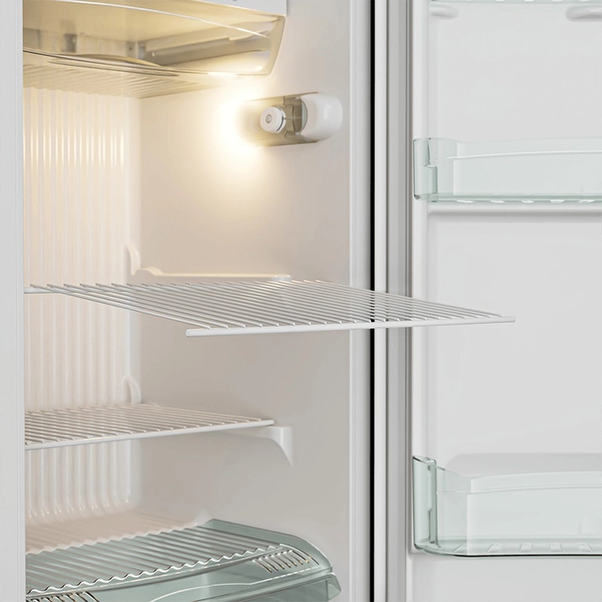 - Prateleiras Removíveis: facilite a limpeza e adapte o espaço para alimentos e recipientes de diferentes tamanhos.