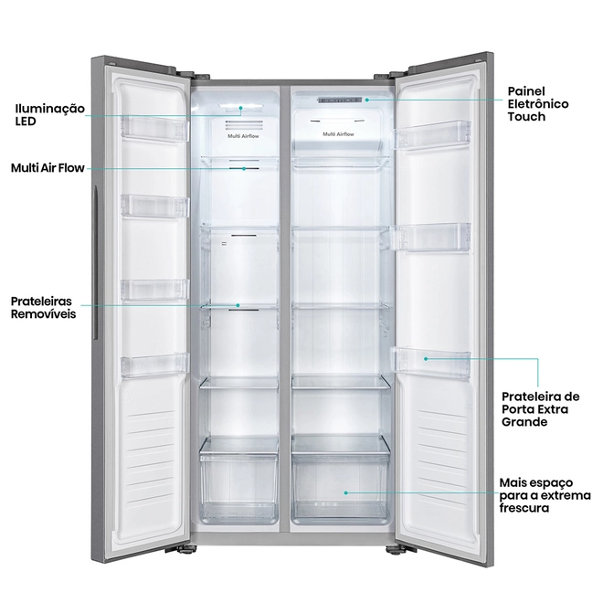 Com 428 litros de capacidade total, ela oferece amplo espaço interno para organizar seus alimentos com facilidade. O sistema Frost Free elimina o descongelamento manual e, aliado à tecnologia Multi Airflow 2.0, mantém a temperatura uniforme em todo o interior, garantindo melhor conservação dos alimentos por mais tempo.