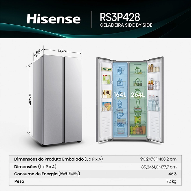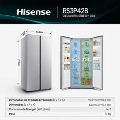 A Geladeira Frost Free Hisense 428L RS3P428 traz o equilíbrio perfeito entre design moderno e eficiência no armazenamento, ideal para famílias que buscam alto desempenho e economia.