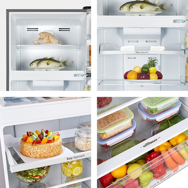 3 prateleiras amplas no refrigerador