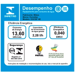 Indicador de Reposição de Água : Nunca fique sem água! Uma luz vermelha acende automaticamente para lembrar a hora de trocar o garrafão.