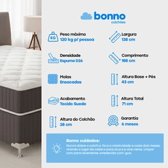 Na Solar, dá pra levar a Cama Box Casal Bonno Valência Molas Ensacadas 138X188X71!
