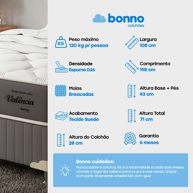 Cama Box Solteirão Bonno Valência Molas Ensacadas 108X198X71