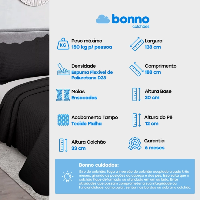 Cama Box Casal Bonno Andes New Molas Ensacadas 138x188x75cm