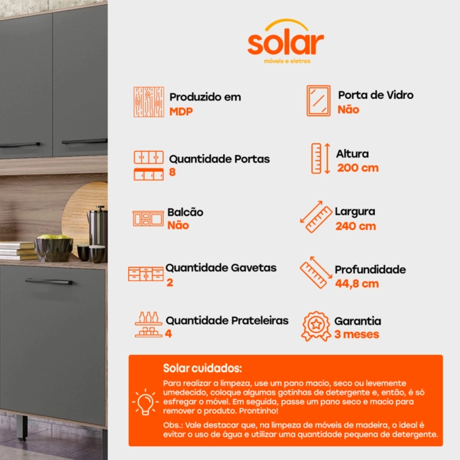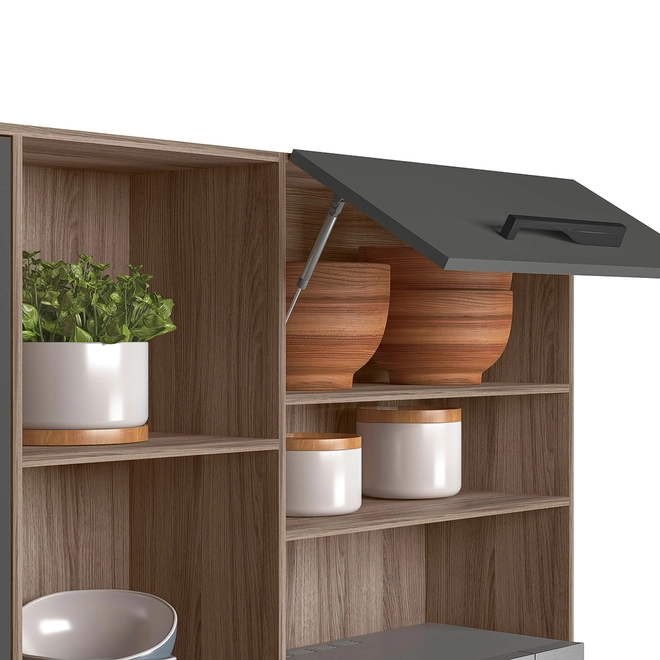 8 Portas com Excelente Armazenamento - Inclui 1 porta basculante para facilitar o acesso às utensílios mais usadas no dia a dia.
