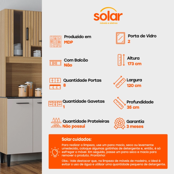 Na Solar, dá pra levar o Armário de Cozinha Compacta Poquema Coral 8 Portas 1 Gaveta!
