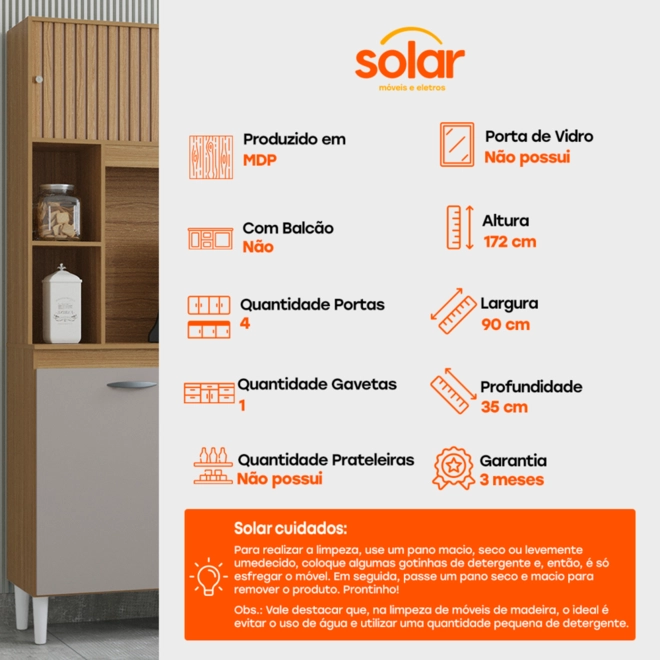 Na Solar, dá pra levar o Armário de Cozinha Compacta Poquema Duda 4 Portas 1 Gaveta!