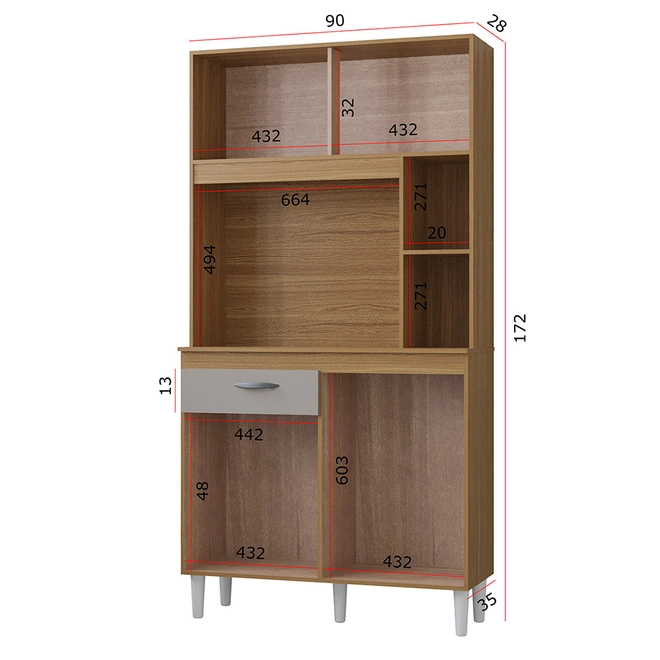 - 1 gaveta com corrediça metálica, ideal para organizar talheres e pequenos utensílios;