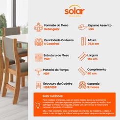 Garanta já o seu Conjunto de Mesa Viero Luna com 6 Cadeiras Sol aqui na Solar!