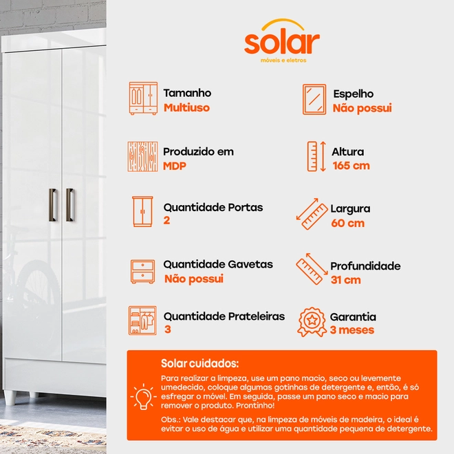 Na Solar, dá pra levar Kit com 2 Multiusos Santos Andirá Fit 2 Portas!