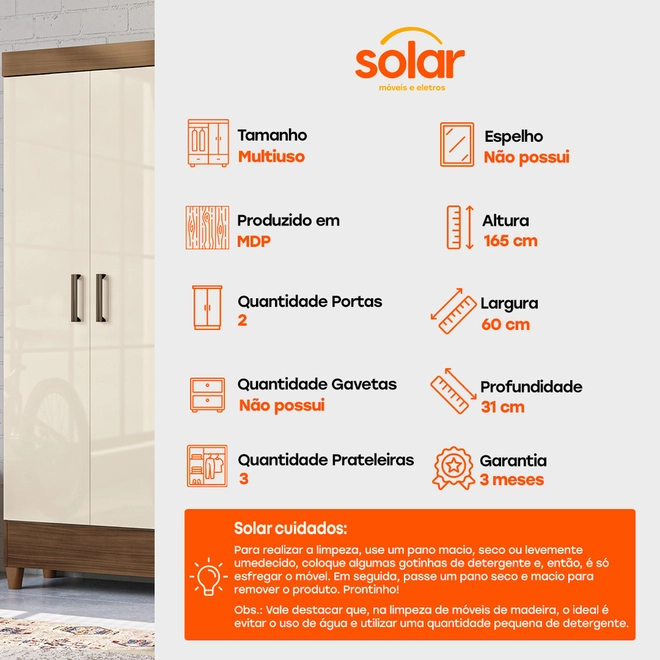 Na Solar, dá pra levar o Armário Multiuso Santos Andirá Fit 2 Portas!