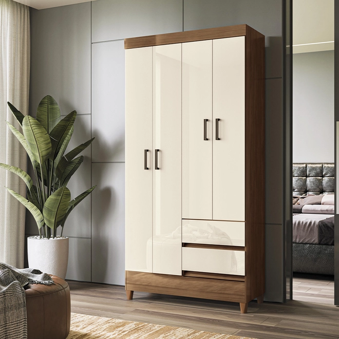 Com o Guarda-Roupa Fit 4 Portas, você terá organização sem abrir mão do estilo. Compacto por fora, mas espaçoso por dentro, ele é ideal para quem deseja praticidade, beleza e resistência em um só produto.
