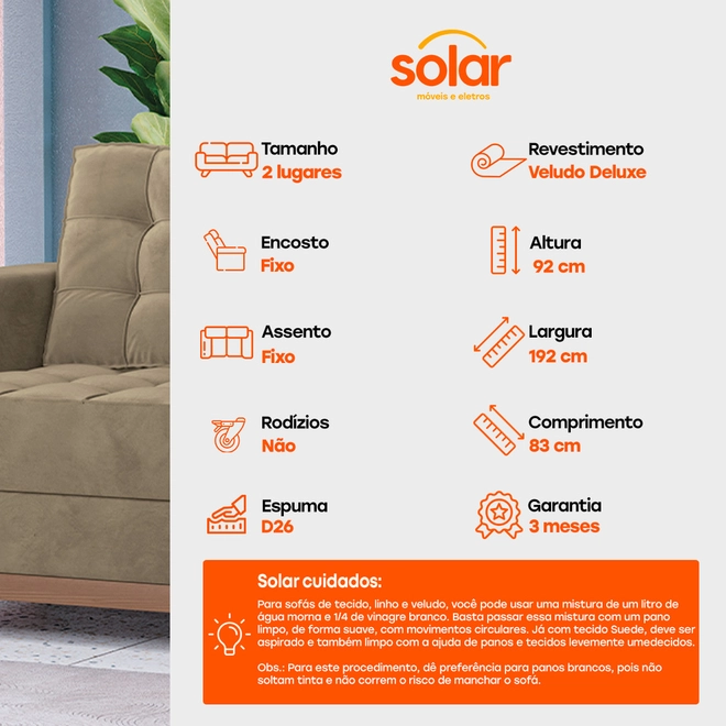 Na Solar, dá pra levar Sofá Kappesberg Nilo 2 Lugares!